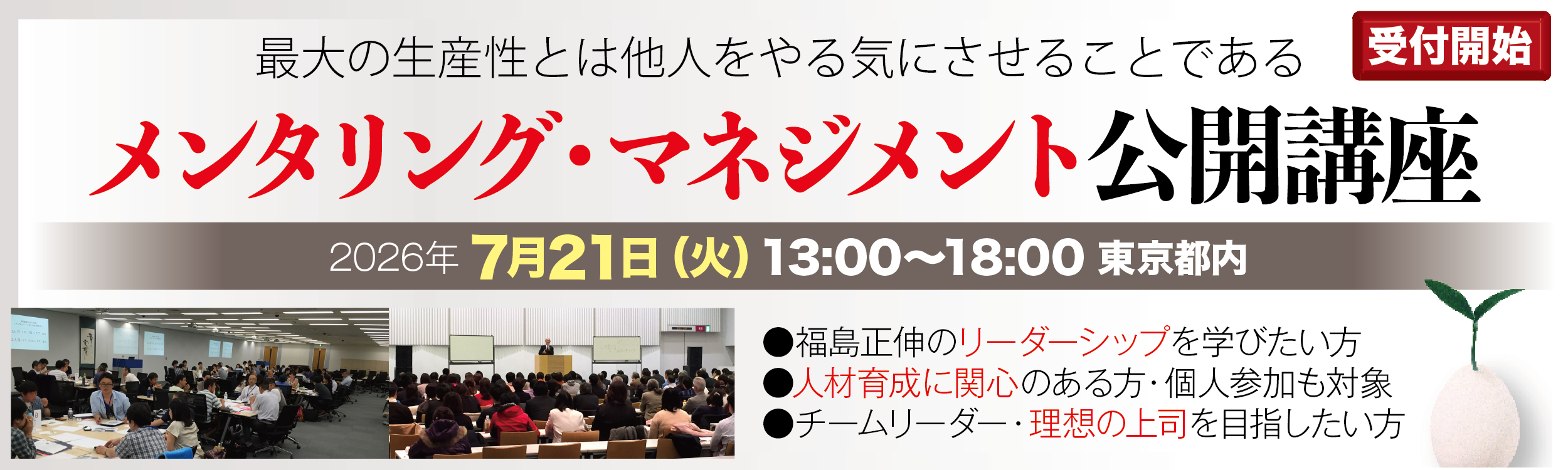7月21日 (火) メンタリング・マネジメント講座ー人を育てるとはー【13:00-18:00】